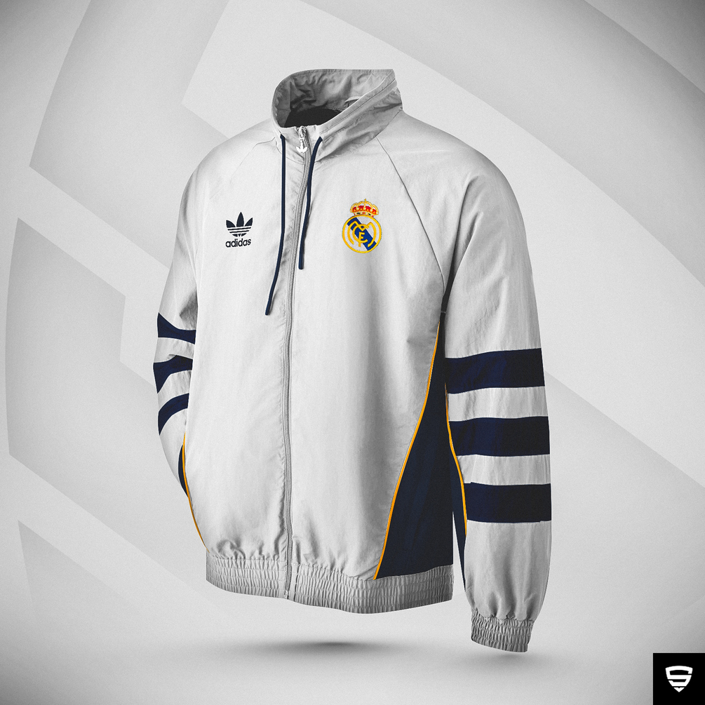 Template en formato PSD de la chaqueta vintage de la colección de 1996 OL x Adidas.